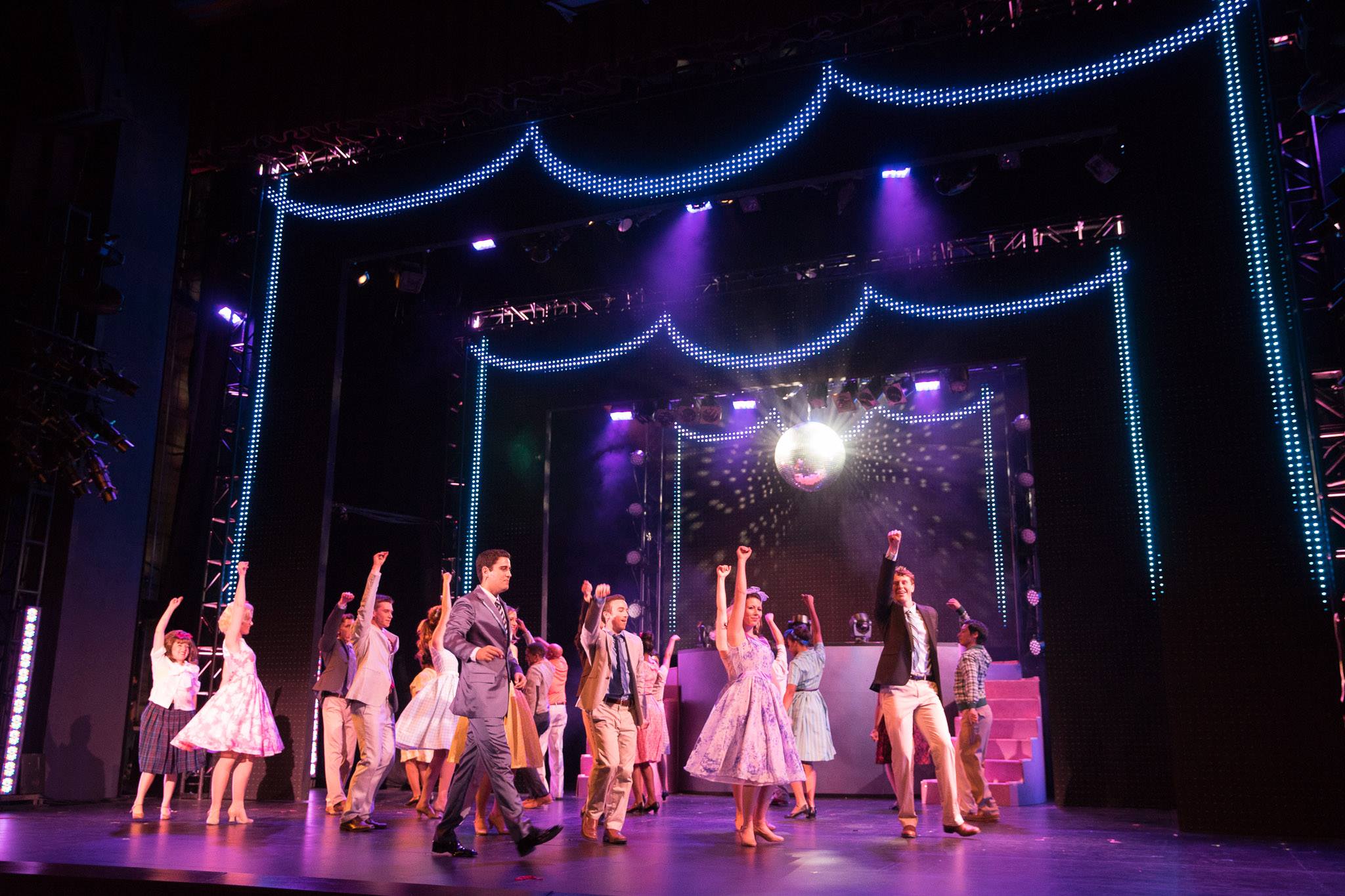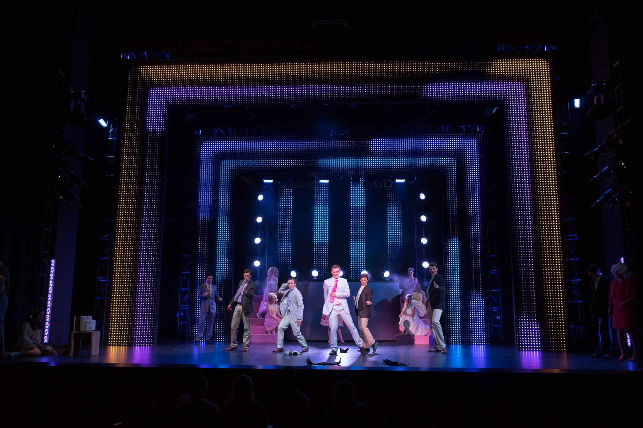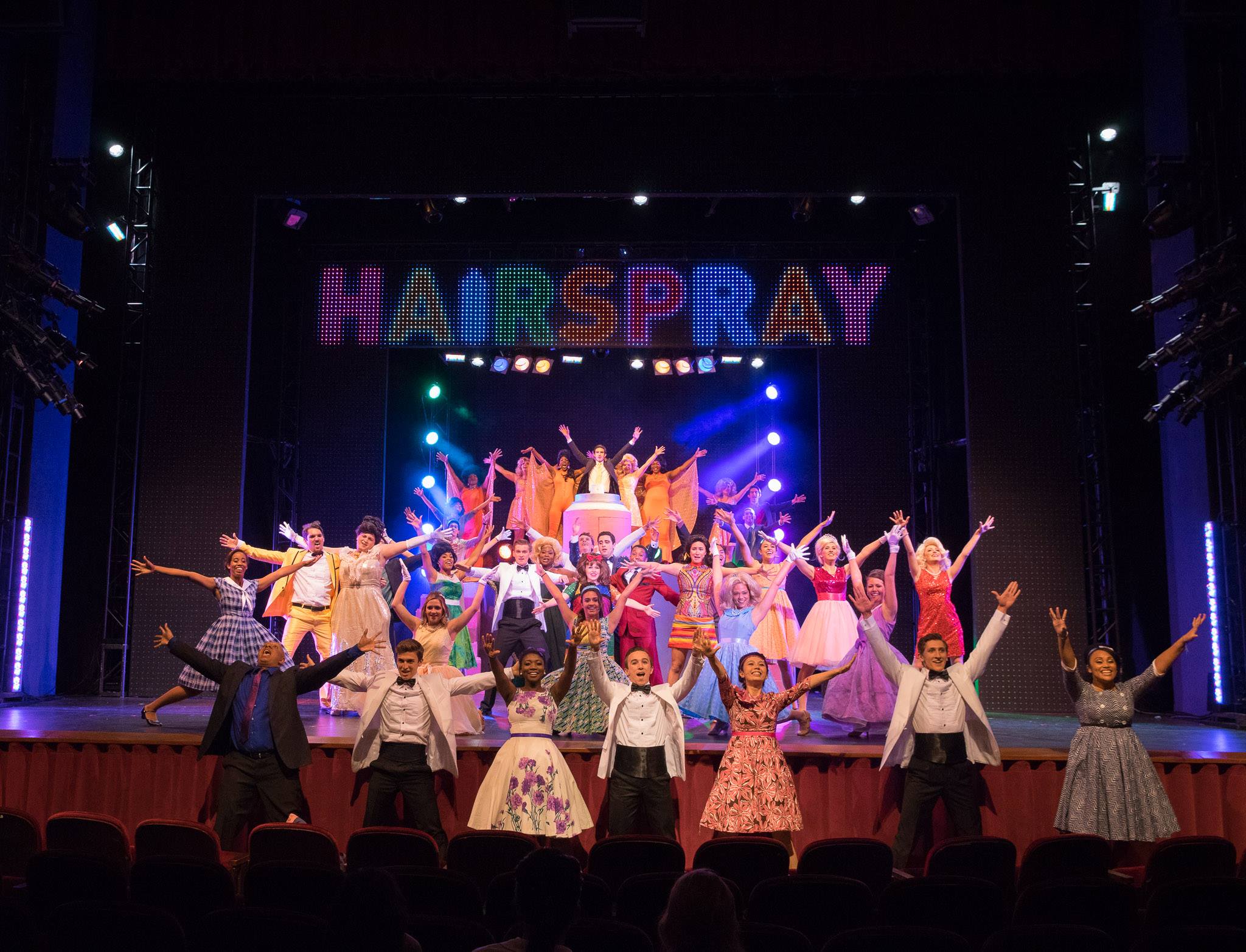 Produced by Ram's Head Theatrical Society, Hairspray was the first performance in Memorial Auditorium to feature a custom built 40' by 20' LED video wall. Content was distributed through a combination of Figure 53's Qlab, Dataton's Watchout, and in-house software.